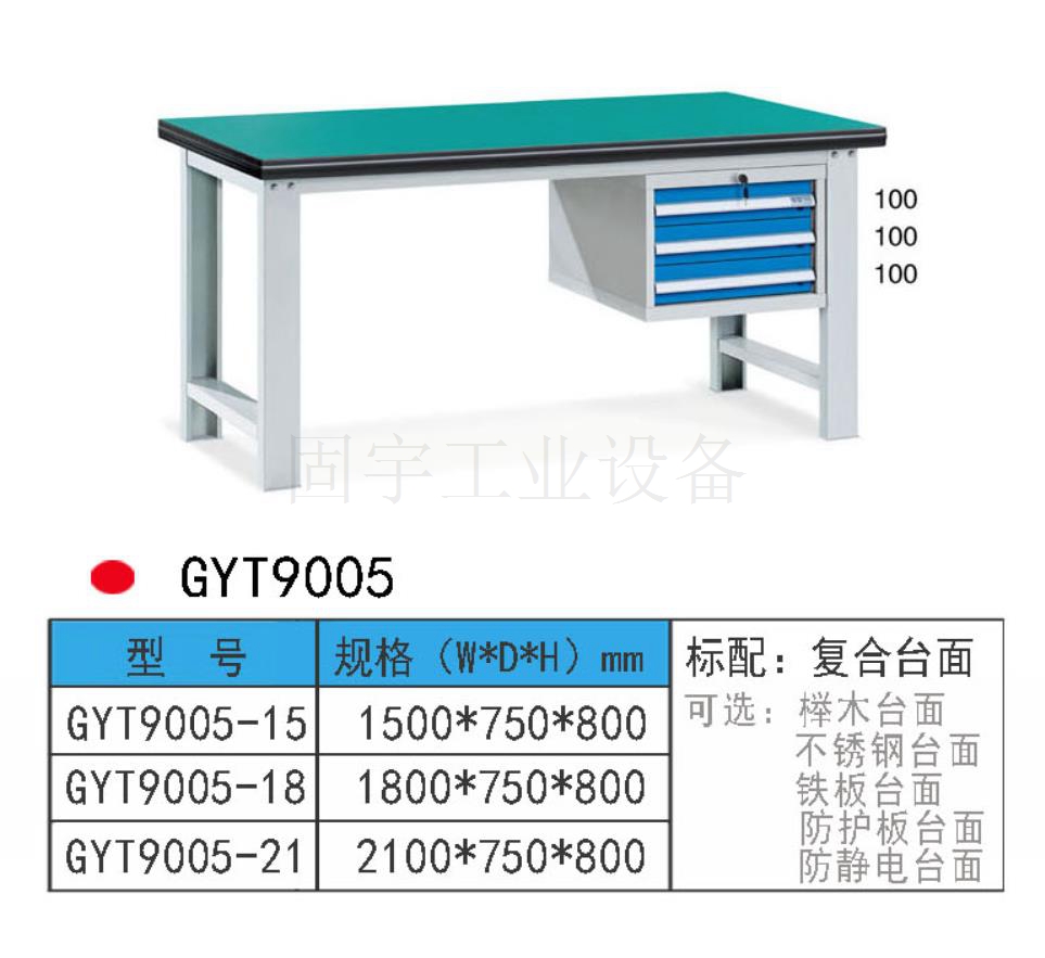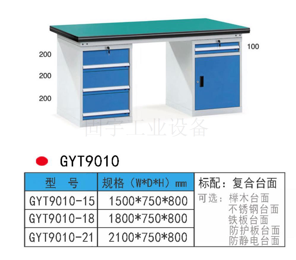 工作臺采用優質冷扎板精工制作而成,堅固的工作桌框架,牢固平穩,可使工作桌承重1000kg;多種工作桌面選擇,可配合不同使用的要求;工具吊柜(箱),側柜(箱)燈架,調節腳杯,,外形美觀;層板,抽屜質量上乘,承重大,抽屜內可根據需要任意分隔;節約空間,適用性強。 范圍 工作臺適合于模具、鉗工、檢測、維修、組裝等各種不同應用場合,具有良好的耐腐蝕性,耐臟性,抗沖擊性和承重能力強。桌面經特殊處理,具有防腐、抗沖擊力強等特點,多種桌面的選擇,可配合不同的使用要求;所配置的抽屜、柜門方便使用者存儲工具;桌角上預留電源孔,方便安裝電源插座。工作臺(桌)分為輕型(可承重300公斤),中型和重型工作臺(桌)可承重1000公斤及特制的工作臺??筛鶕枰`活地配置各種吊柜、單柜、雙柜等,可加裝掛板,電器板,燈頂板、調節腳杯,輪子,擱板等桌上部件,具有多種選擇,能夠滿足各種工位的需求。 工作臺材質采用優質冷軋鋼板,表面采用靜電噴涂處理而制成,堅固的工作桌框架,牢固平穩,可使工作桌臺面均勻承重達到1000kg。桌面有多種材質組成,適用于各行業辦公場所??膳浜瞎ぞ吖?,吊柜,掛板,單開門柜使用。抽屜、承辦承重大,性能好,抽屜里可根據需求配置分隔條 工作臺分類:根據臺面的不同分為:櫸木工作臺、鋼板合成工作臺、防靜電工作臺、高分子工作臺;根據承重的不同分為:輕型工作臺、中型工作臺、承重型工作臺;根據功能的不同分為:多功能工作臺、帶吊柜工作臺等等。 臺面優勢 復合臺面特性臺面平整度高,撓曲度為0.8mm。表面2mm厚度為高分子材料,使臺面耐酸堿、耐磨、耐油。臺面采用高壓纖維板,使臺面更具有抗沖擊性。特別的圓弧桌角,不易受撞擊損壞。高強度塑膠包邊堅固、實用、不易損壞、不易脫落。櫸木桌面特性桌板使用櫸木與防水膠經加壓制造而成。表面光滑平整,美觀不易變型,耐油、耐熱、耐酸、耐堿,適合一般工廠作業與精密模具維修,儀器置放與檢測等用途。不銹鋼包面特性桌板使用高壓合成板,表面包1-2mm砂面不銹鋼板,以達美觀耐用。耐高溫、耐磨損、耐油、使用壽命長,為多功能桌板,適合一般工廠、食品業、研究室、電子廠無塵室使用。輕型工作臺可承重300kg-500KG防火板臺面特性輕巧、美觀、耐磨、防火。層壓板臺面特性工作桌面平整,變型小,強度高,抗沖擊性好。 標準顏色 產品顏色 標準的顏色可分為6種:淺藍色(RAL5015), 電腦灰(RAL7035), 機床綠(RAL6011),深藍色(RAL5017)。